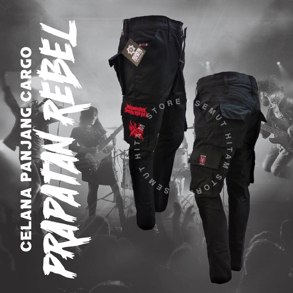 [GESER KIRI] Prapatan Rebel Celana Panjang Cargo / Kempol Panjang Alpin PDL Hitam Bordir Band Musik Metal / Punk Prapatan Rebel