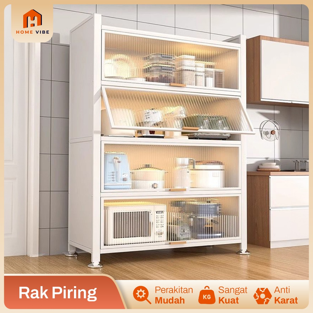 Rak Dapur Pintu Tertutup Besi Merek Lemari Rak Piring Susun Oven Microwave Minimalis