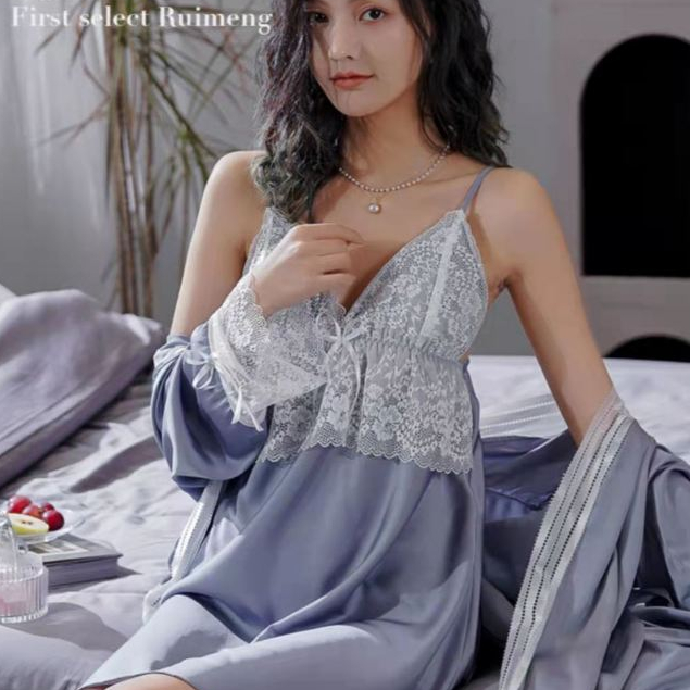 gender: woman item type :sleepwear model number :onesize satin dan brokat halus/manis colour :biru dan ,merah (ki