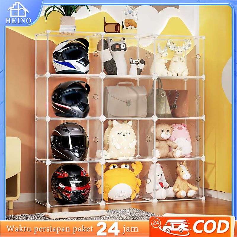 Rak Tas Heino Transparent / Kedap Debu / Lemari Boneka Mainan