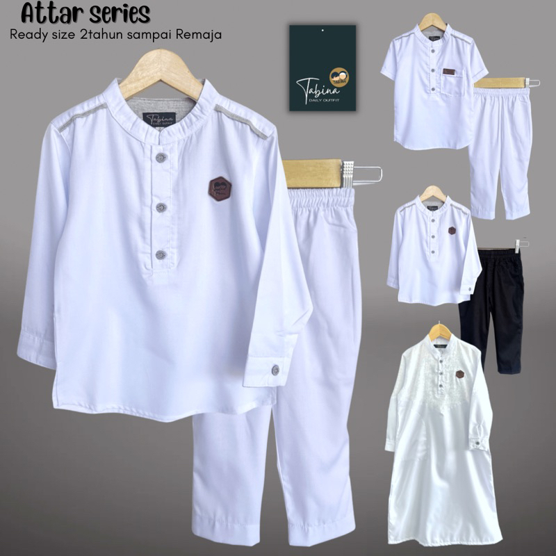 Setelan Koko Kurta Putih Lengan Panjang Anak Laki-Laki Tabina Seri Attar Usia 1 Hingga 16 Tahun