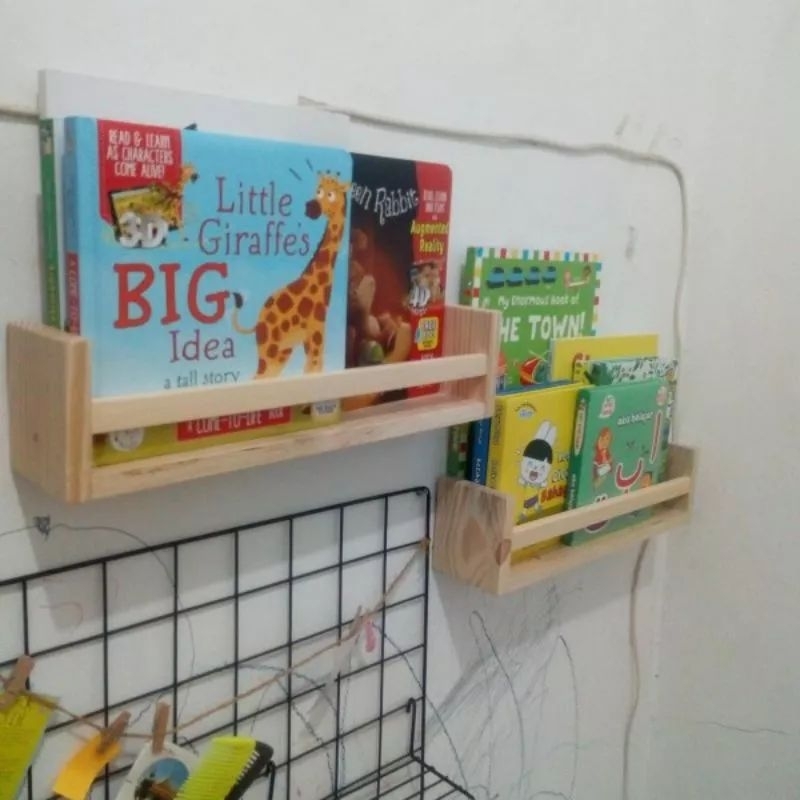 Rak Buku Minimalis Kayu Jati Belanda Tempel Dinding Ruang Belajar