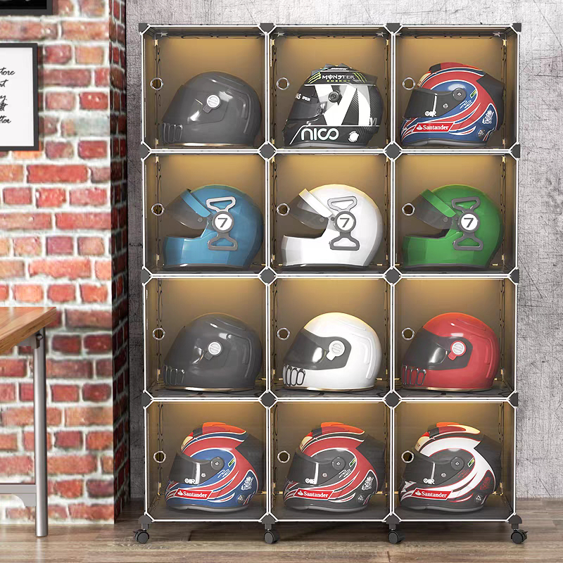 Rak Helm Tertutup Tahan Debu & Serangga / Heino Lemari Pajangan Helm / Rak Tas / Lemari Tas