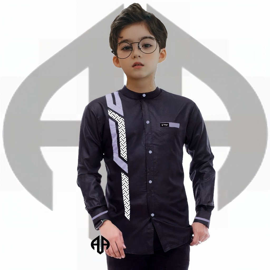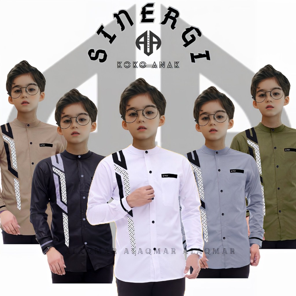 Baju koko anak lengan panjang dan berkacing rapi kombinasi motif sinergi kombinasi batik umur 5-14 tahun