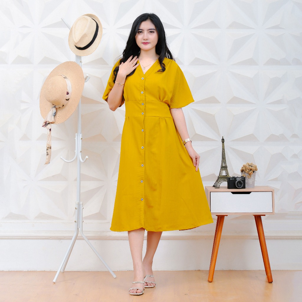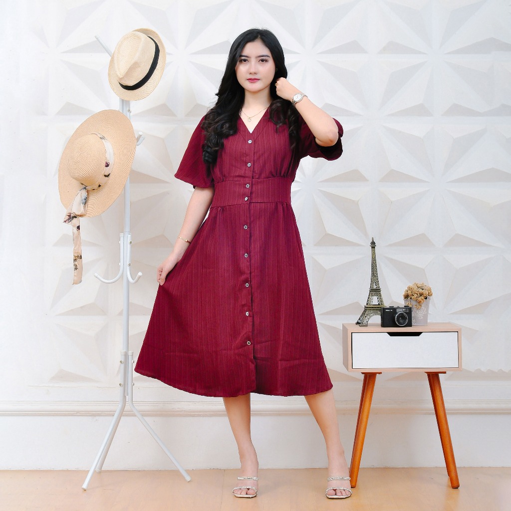 BIG SALE Dress Korean Style - Dress Lady Crus Midi Busui Friendly Premium Korean Style Casual dress wanita korea