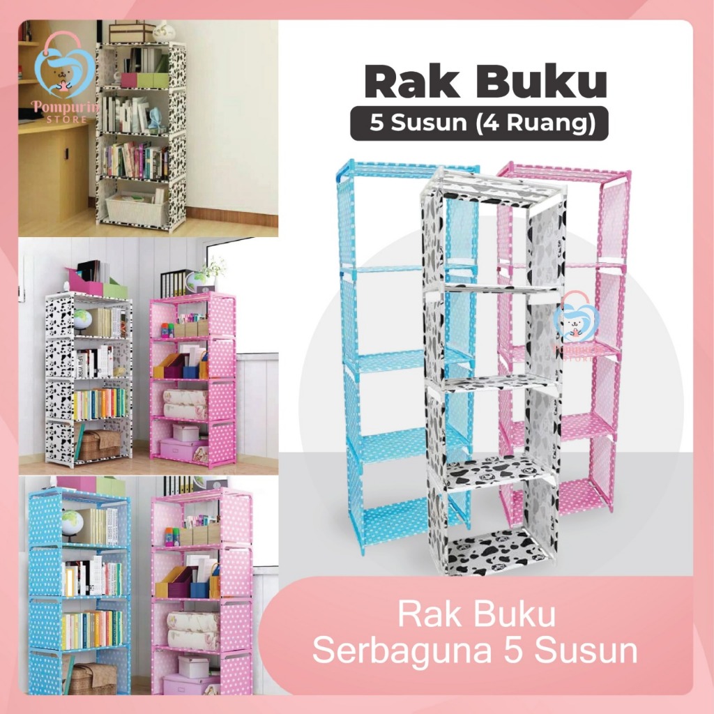Rak Buku Serbaguna 5 Susun 4 Ruang Portable Rak Sepatu Multifungsi