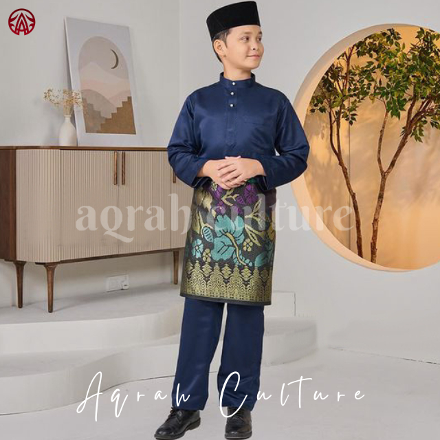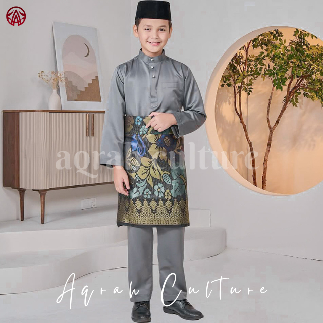 Azura Baju Melayu Anak Laki Laki Modern Bahan Satin Velvet Satu Set Pakaian Koko Muslim Kurta Cekak Musang Teluk Belanga Adat Malaysia Riau Premium Lilac
