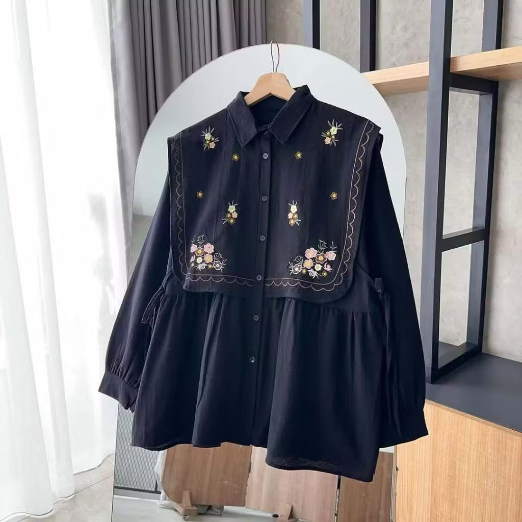 Lauren Blouse - kemeja bordir semi vest bahan linen. atasan wanita trendi