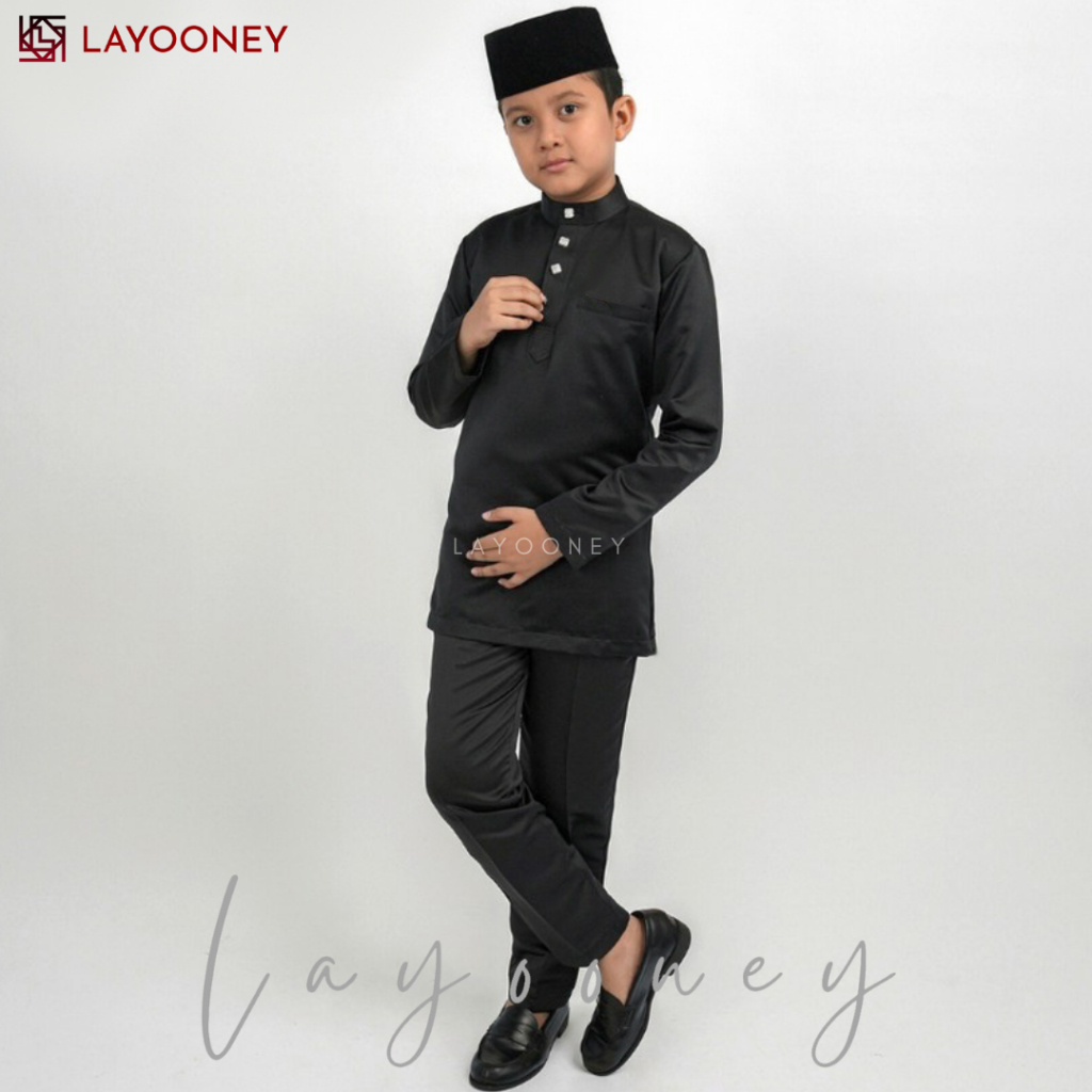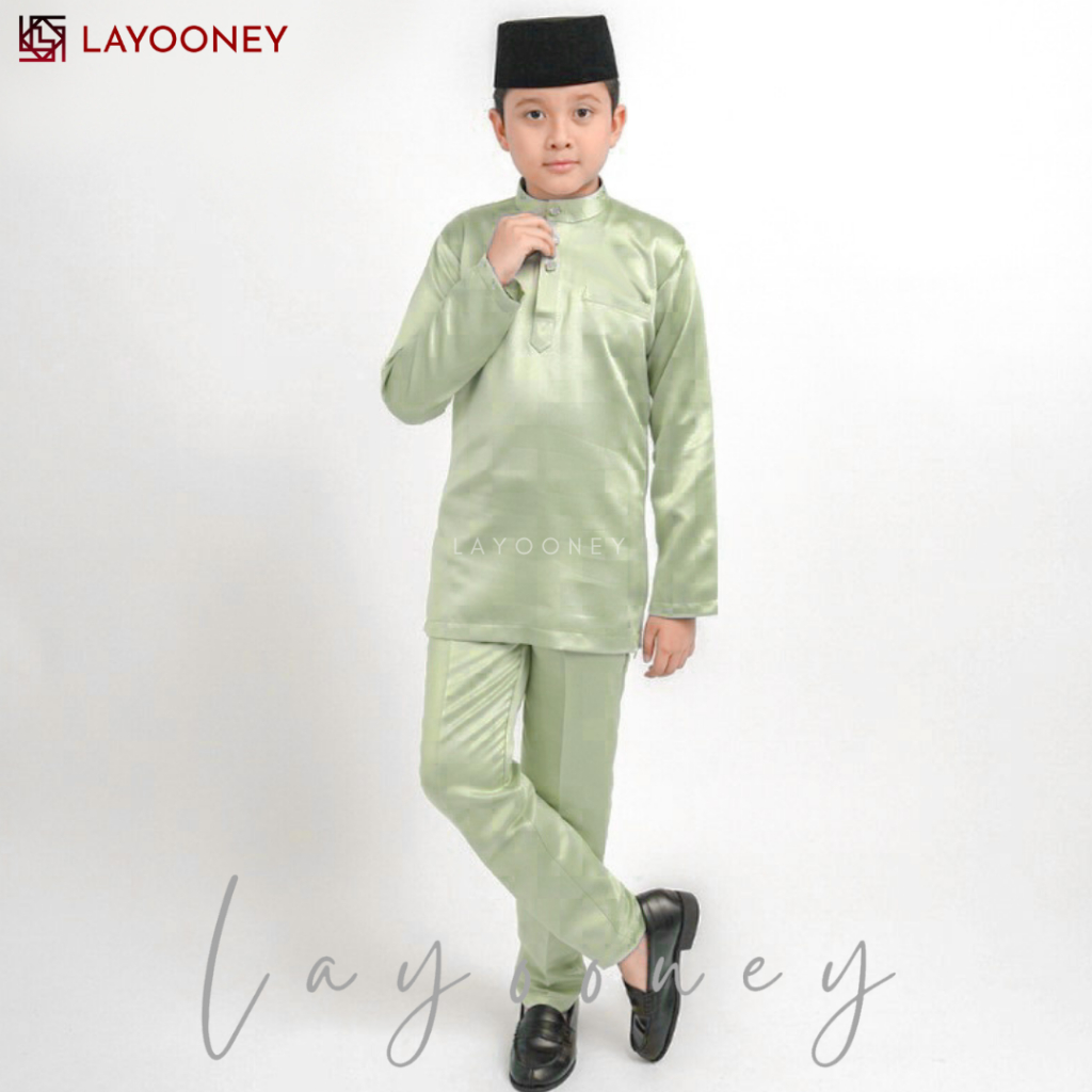 Layooney Baju Melayu Anak Laki Laki Teluk Belanga Cekak Musang Setelan Pakaian Muslim Koko Satin