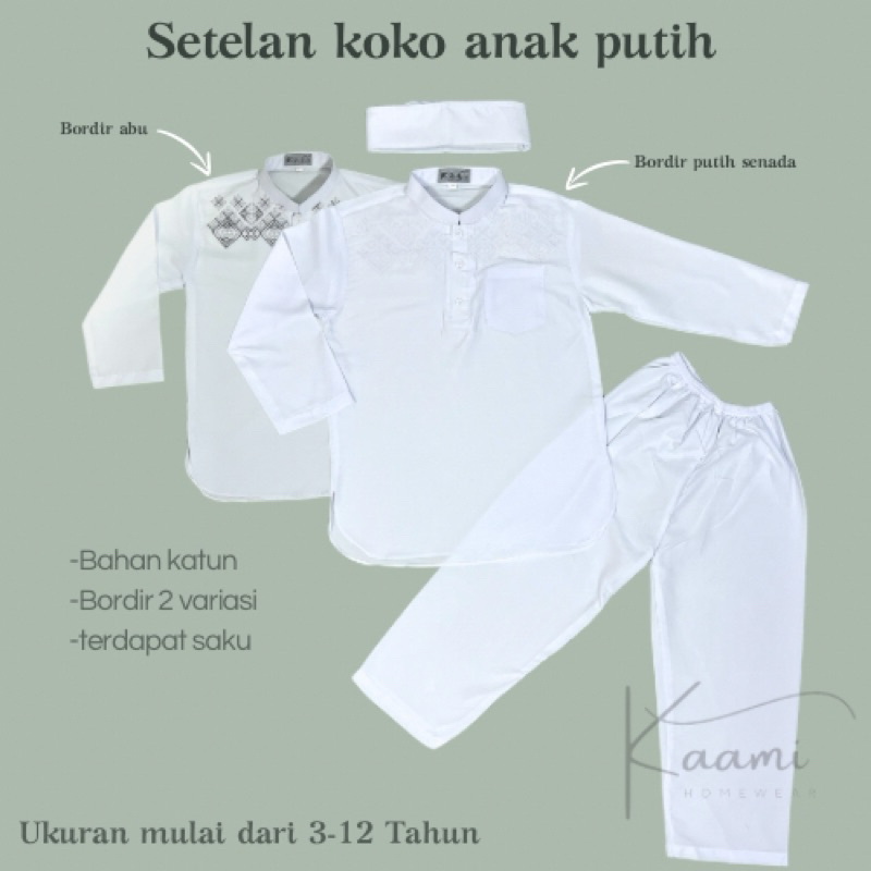 Kaami – Setelan Baju koko anak putih Manasik haji dengan Bordir Model Kurta