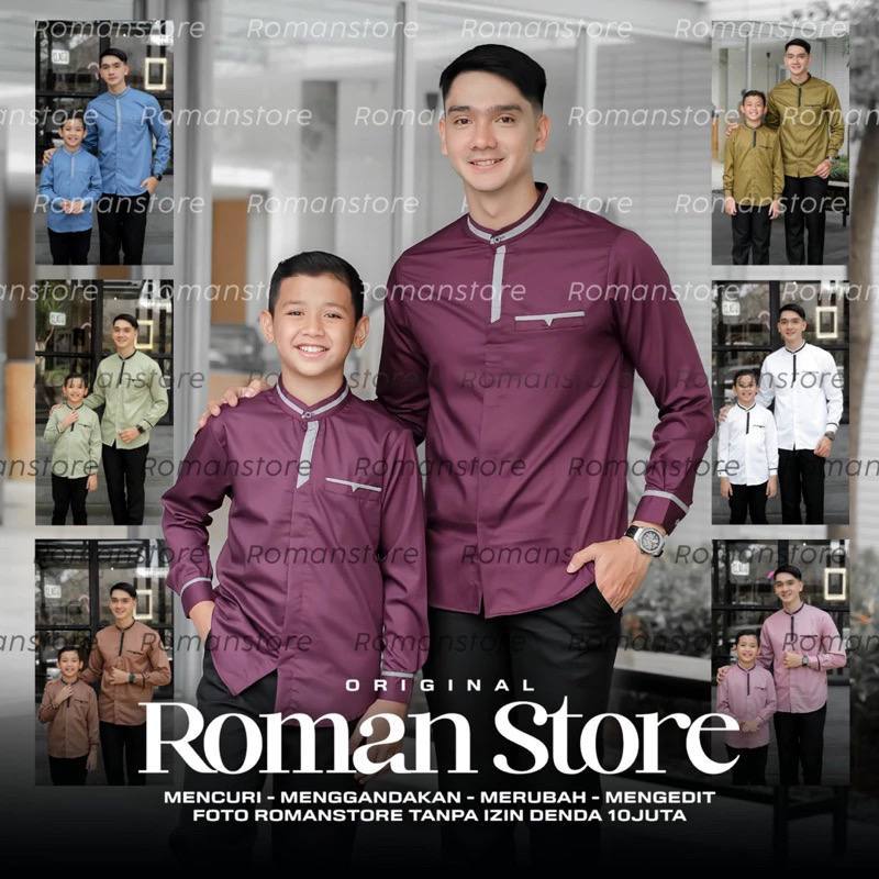 Baju Koko Couple Ayah Anak Laki Laki Lengan Panjang Terbaru 2025 Bahan Toyobo Import Warna Burgundy
