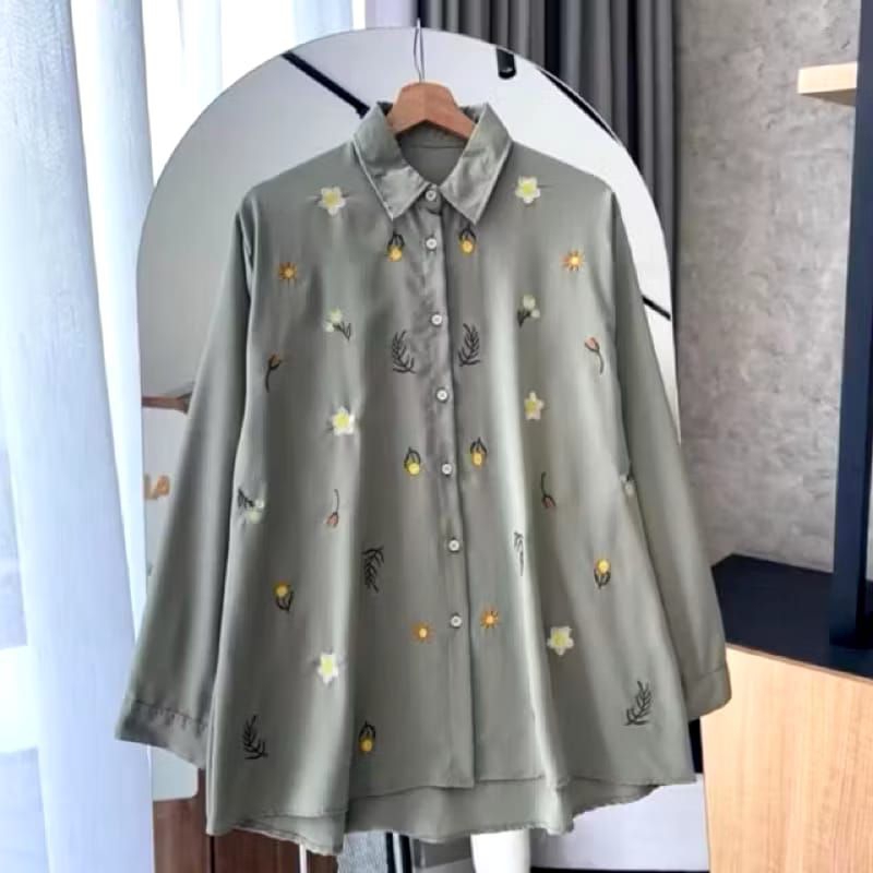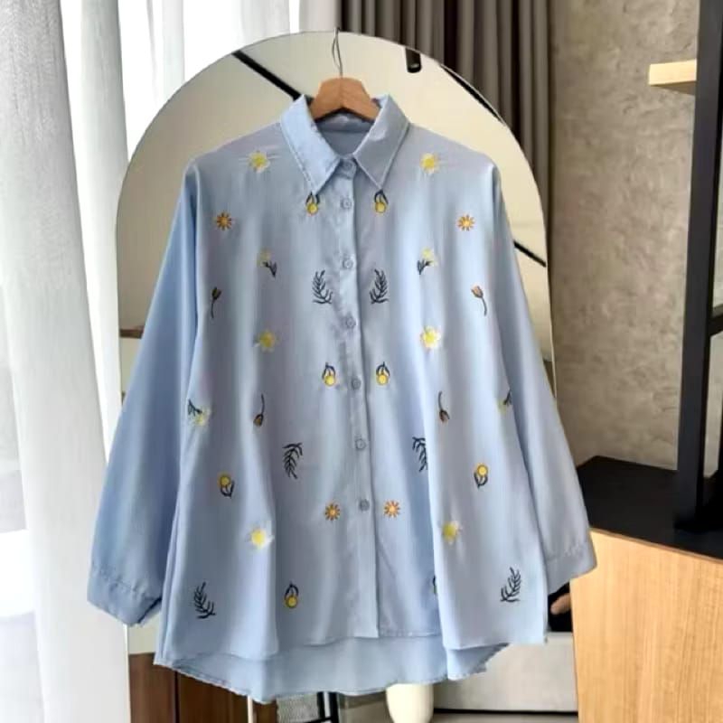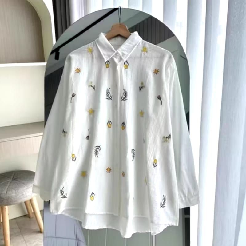 Blouse Wanita Oversaize Bahan Linen Remi Premium Kemeja Bordir wanita Terbaru