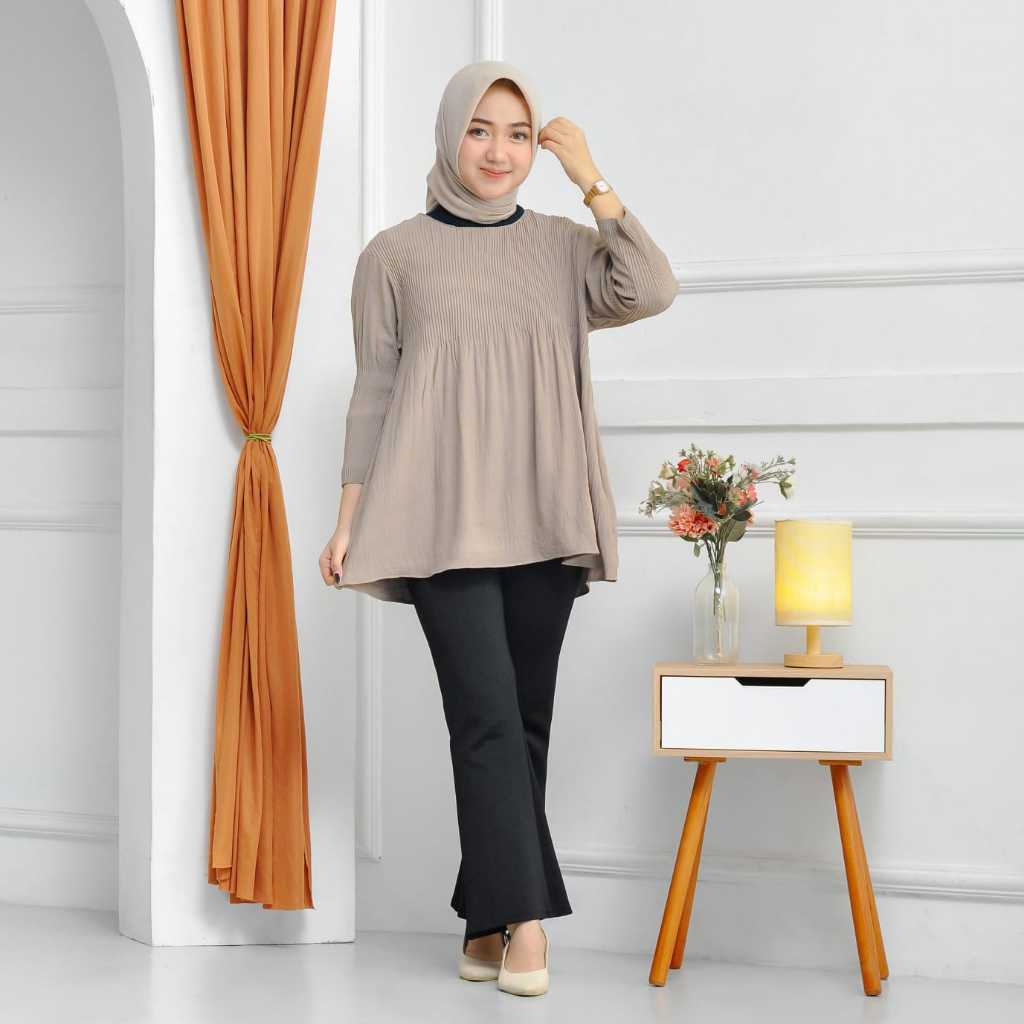 BIG SALE Davina Blouse Atasan Wanita Crinkle Super Lidi Strips Polos dress wanita korea