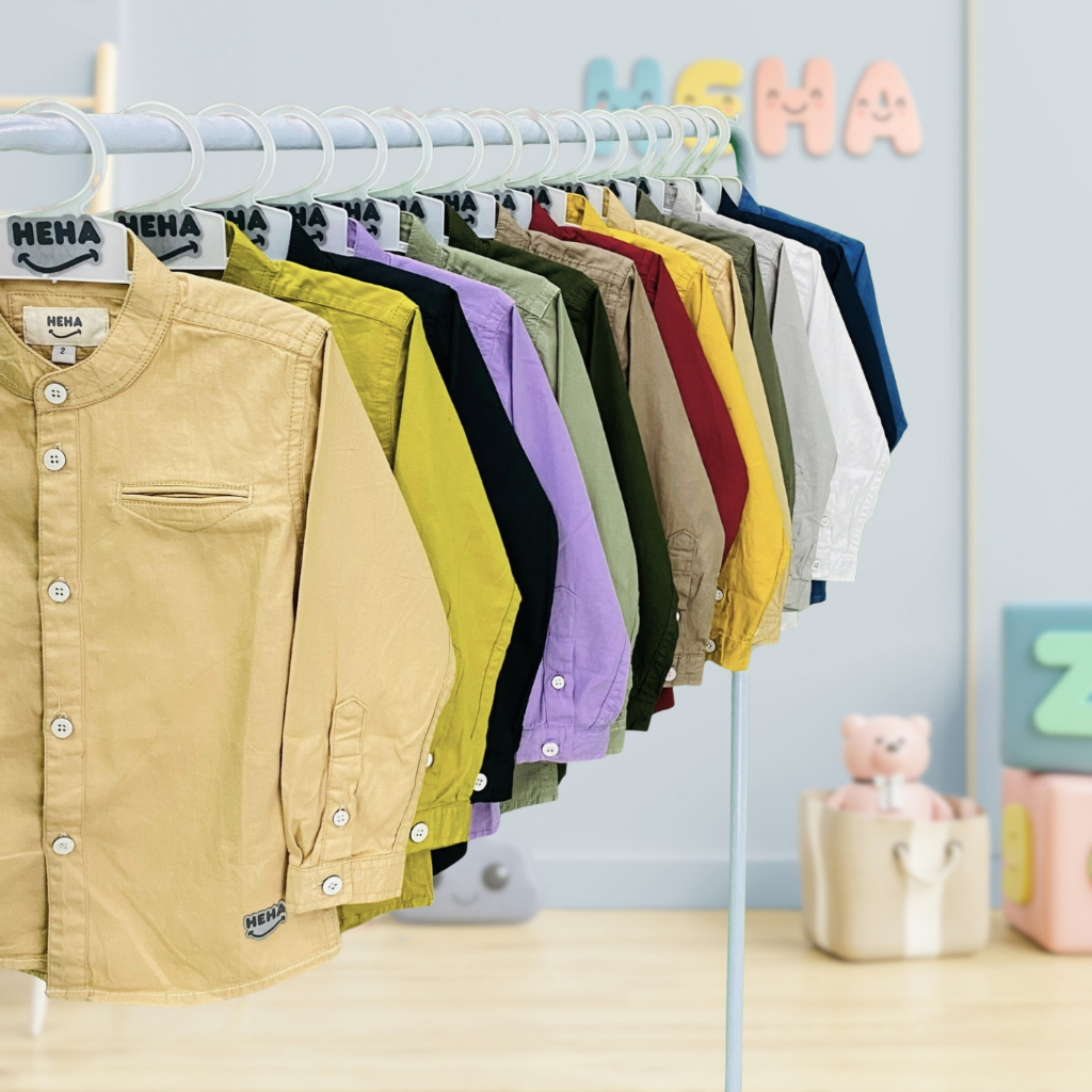 HEHA - Cana Kemeja Koko Polos Anak Laki-Laki Lengan Panjang Material Full Katun