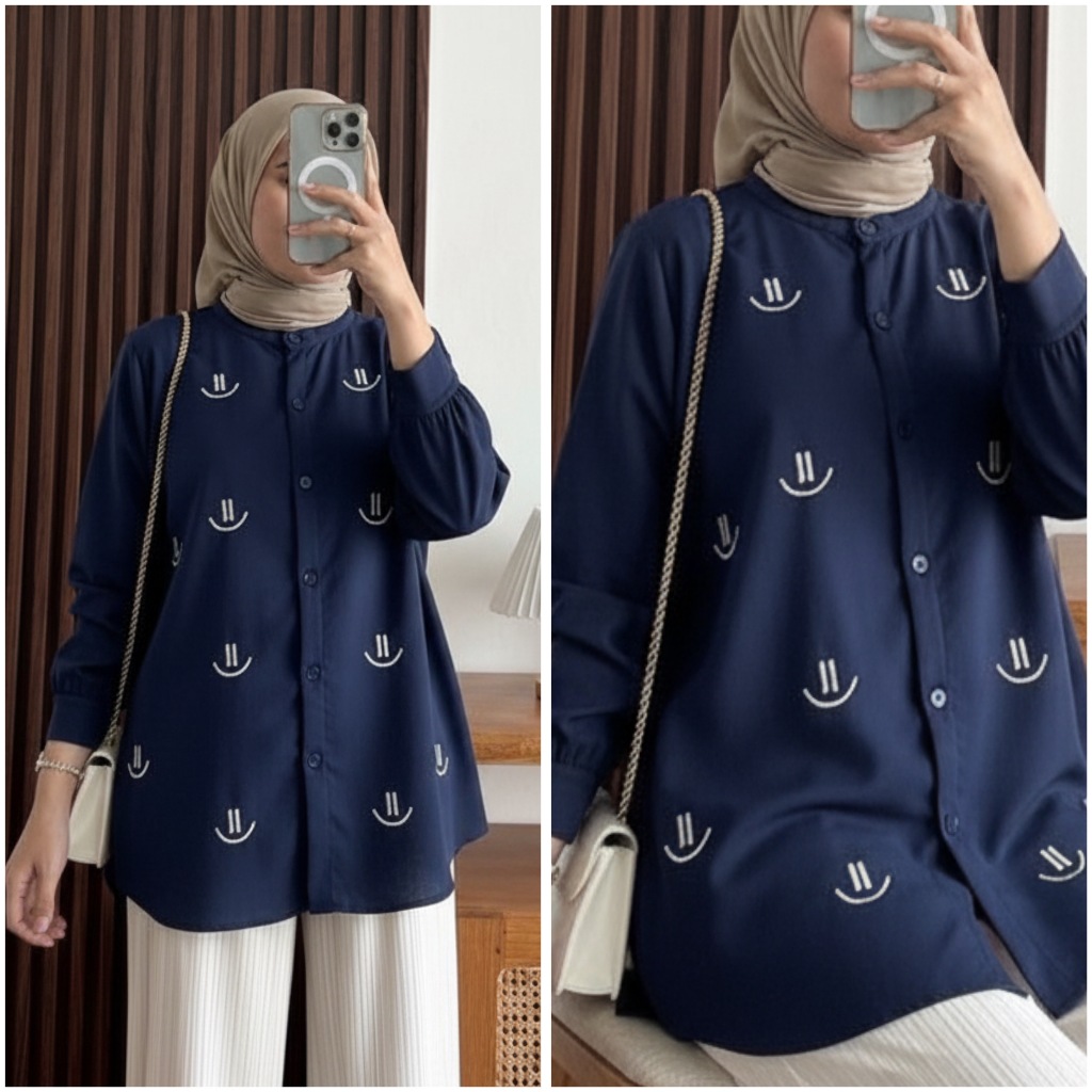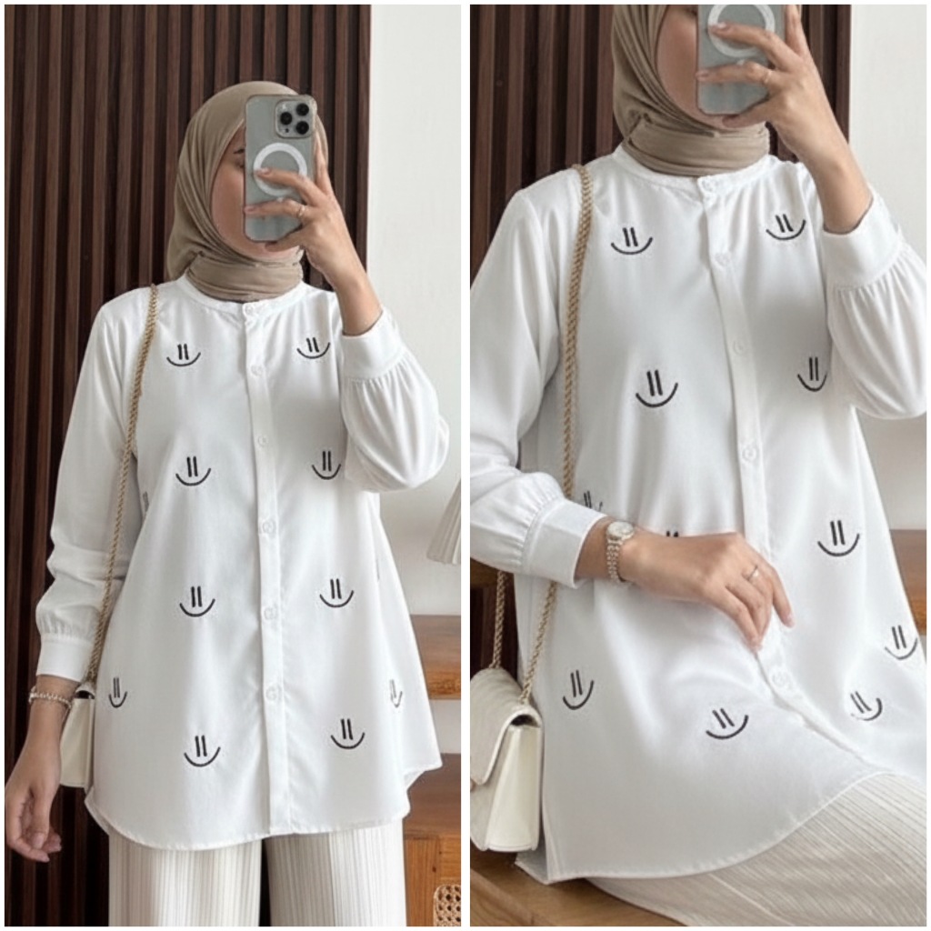 Shaina Blouse Kemeja Wanita Bordir Smile Rayon Twill Premium Atasan Kekinian