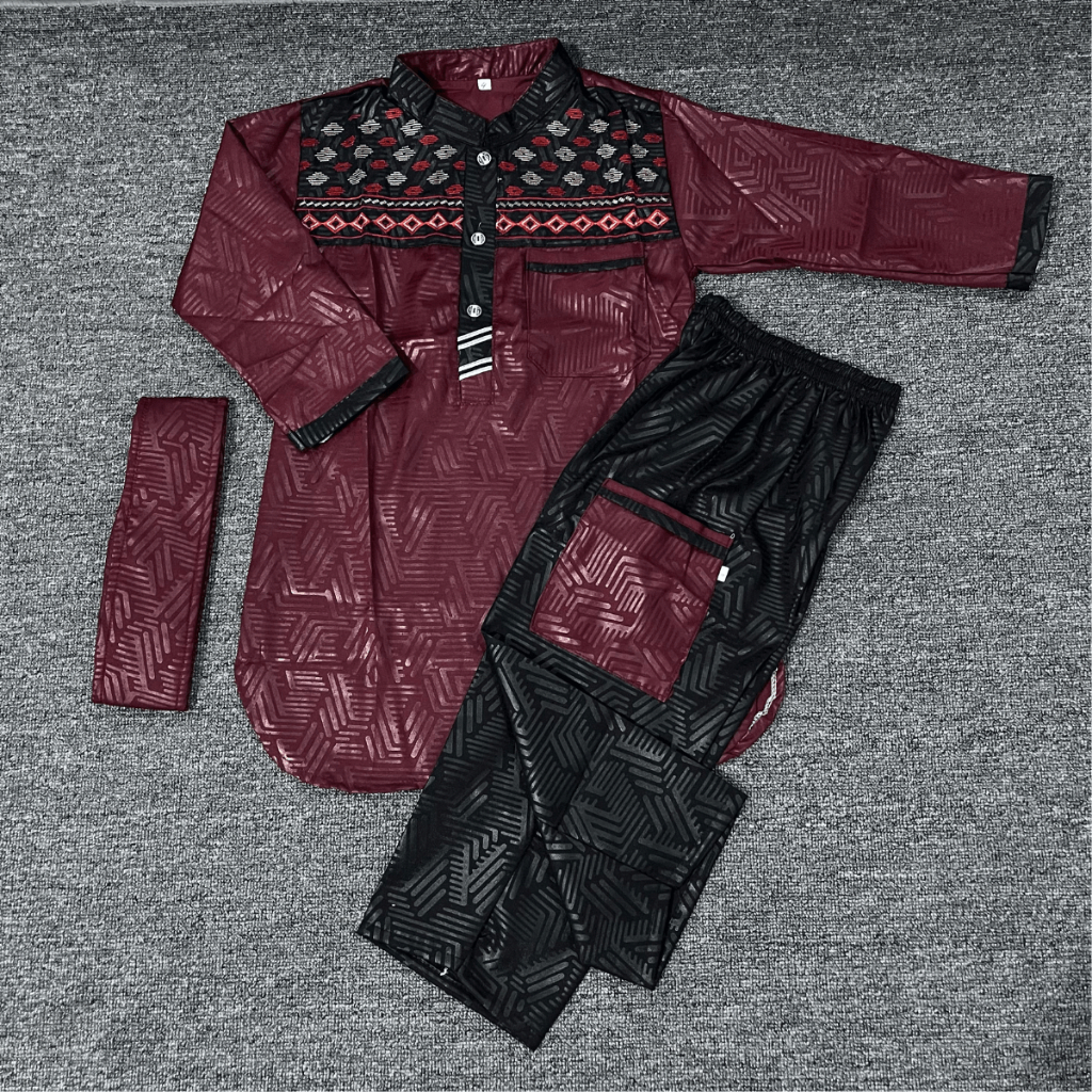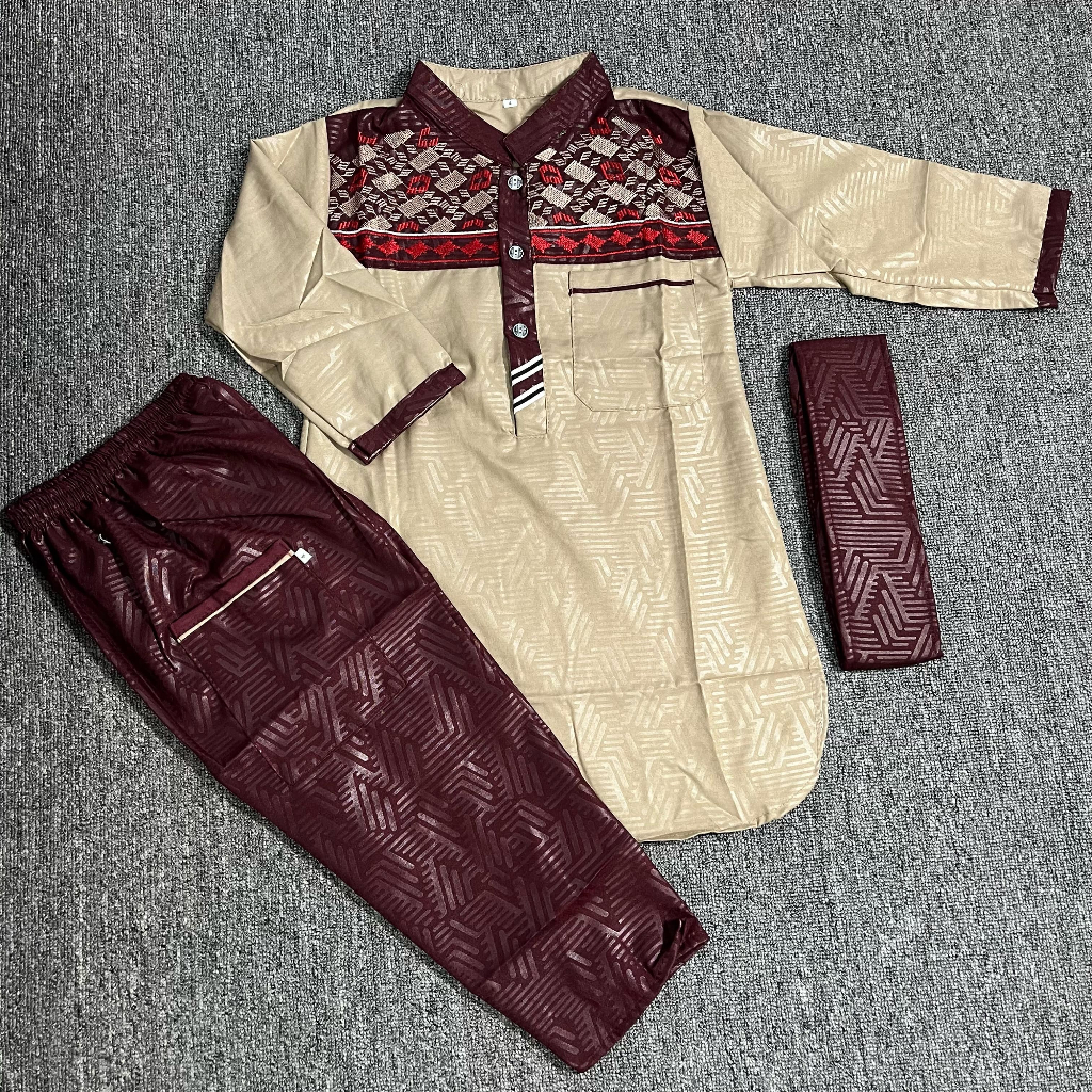 Setelan Baju Koko Kurta Anak laki-Laki bahan Embos