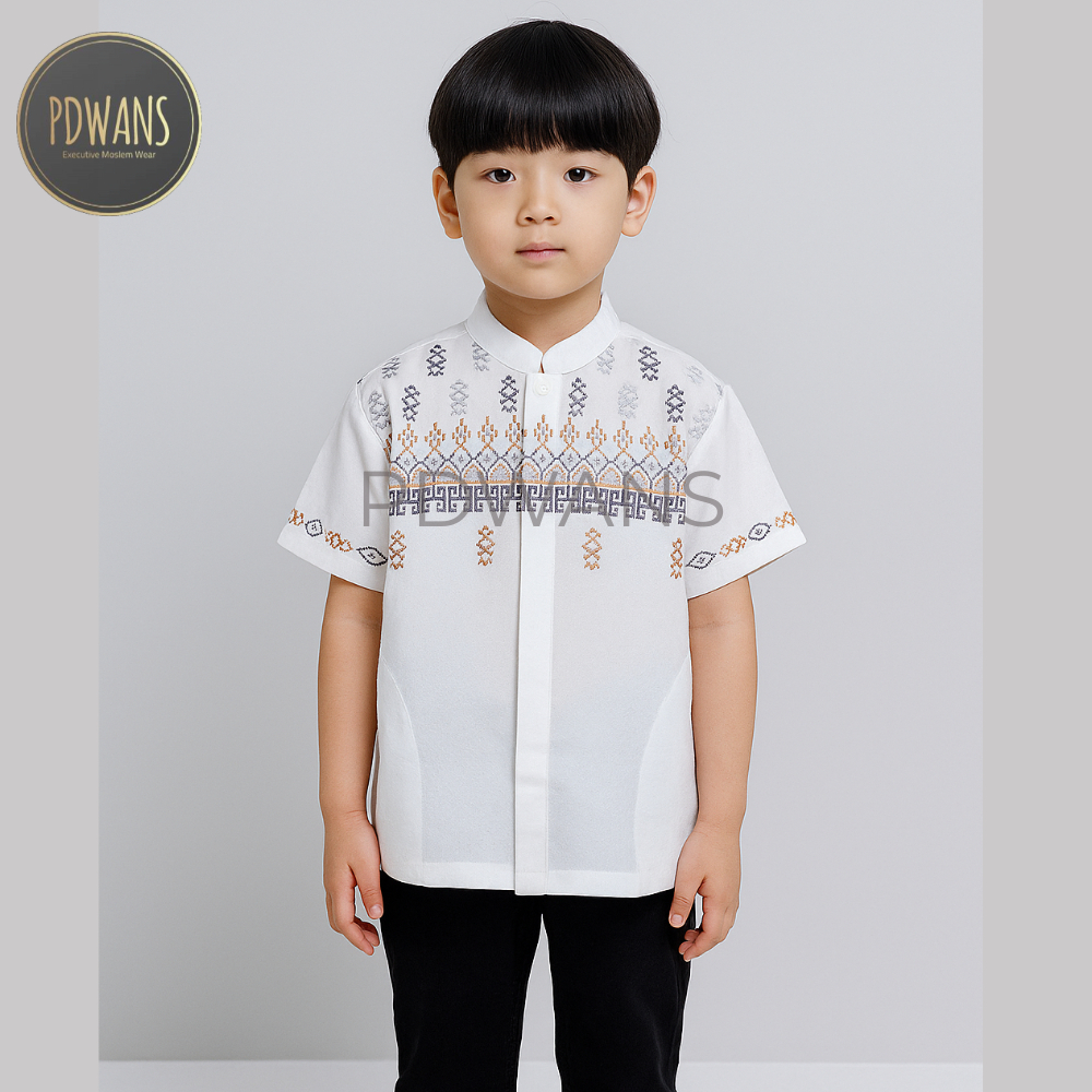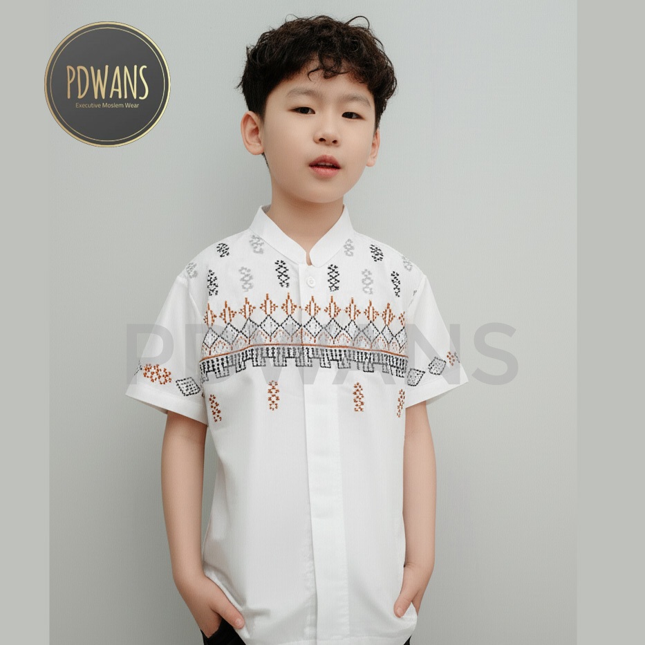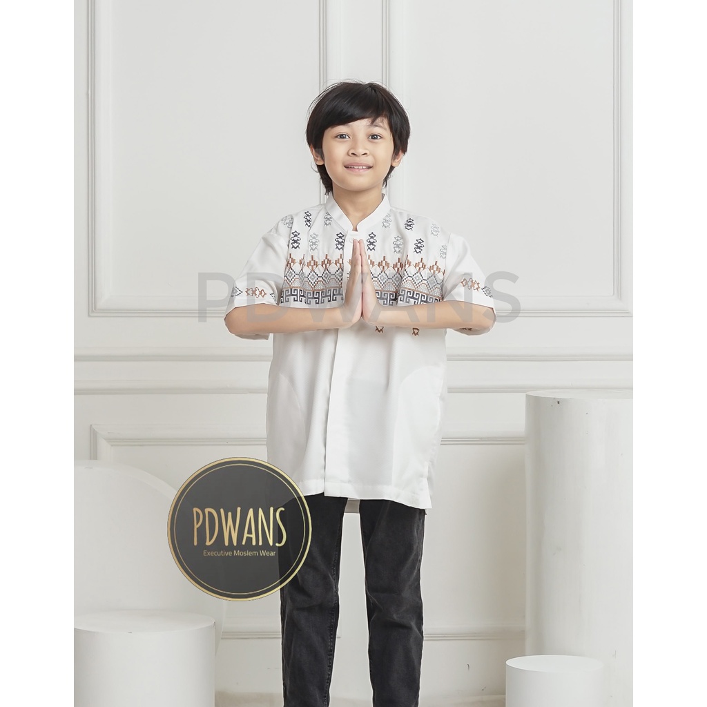 Baju Koko Anak Remaja Tanggung Lengan Pendek Putih Kemeja Koko Muslim Bordir PDWANS - BMT24TGG