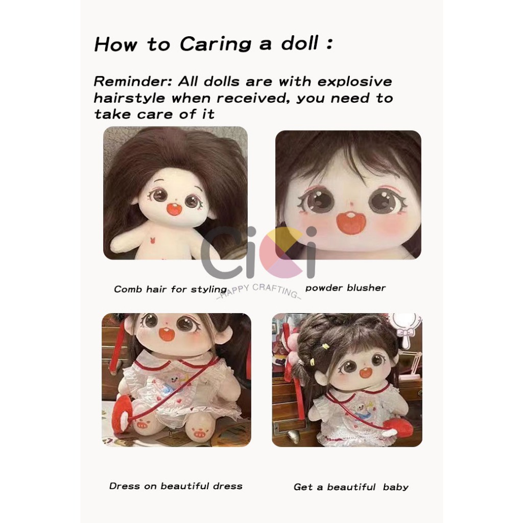 20cm Cotton Doll with Skeleton Mainan Anak Plush Toy Doll Boneka Kapas Crazy and Cute Hair Doll Non Attribute Naked Doll Set Girl in Baby Clothes Hadiah Natal Boneka Lucu Hadiah
