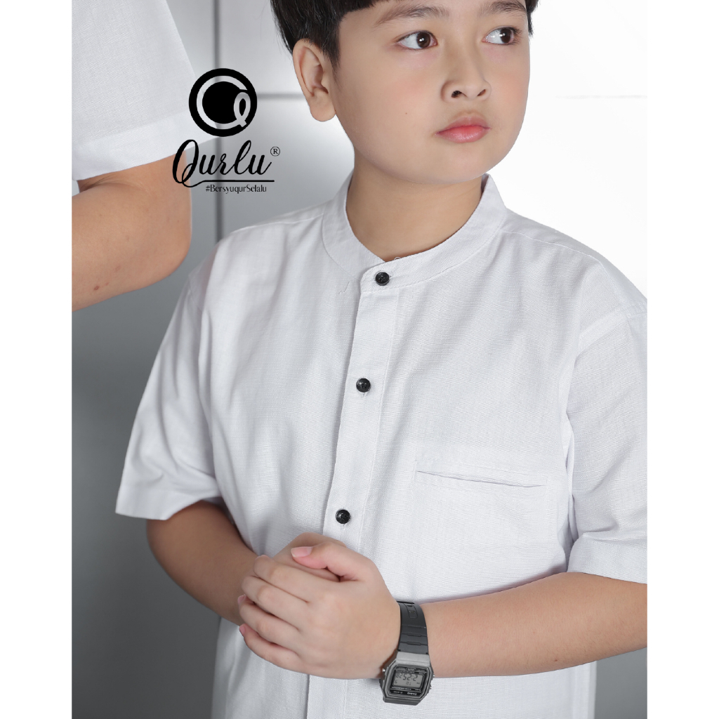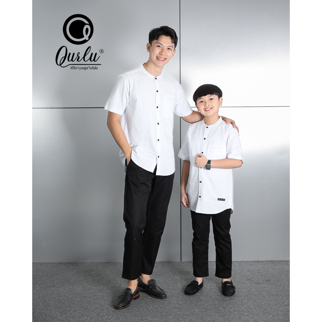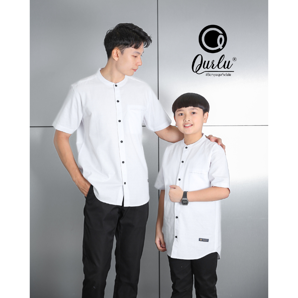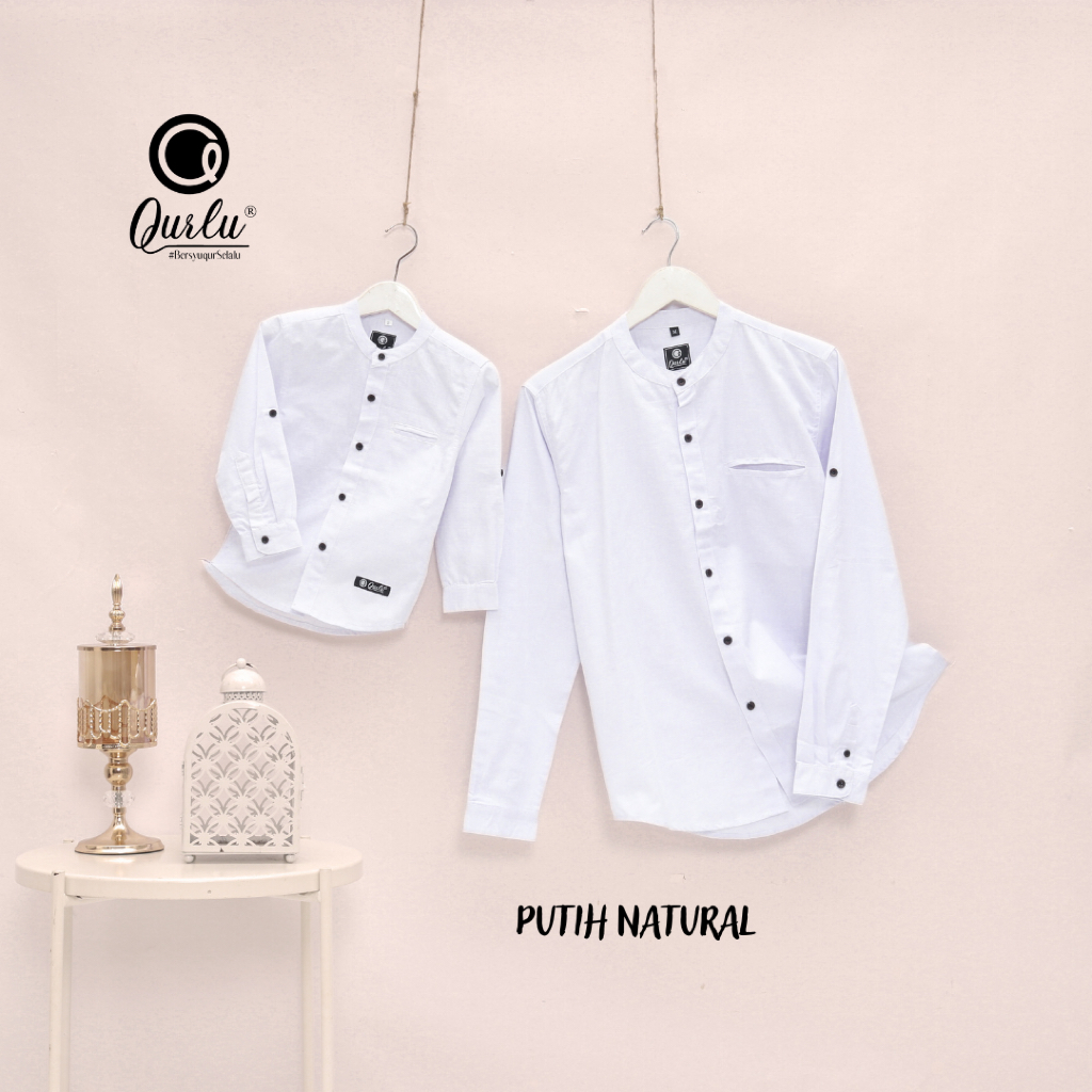Qurlu - Kemeja Koko Dewasa/Anak warna PUTIH NATURAL kemko baju couple ayah anak lengan pendek dan panjang PREMIUM Baju Koko Pria