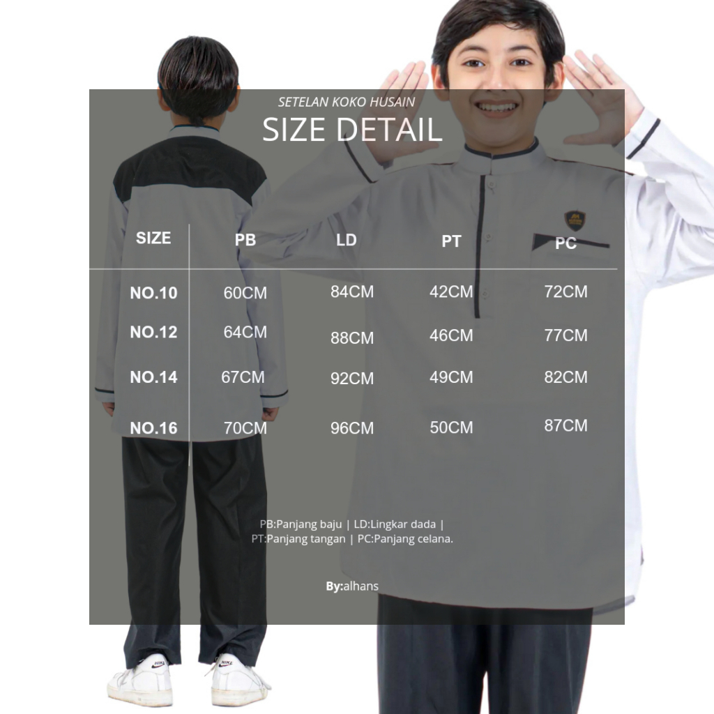 ALHANS Setelan Baju Koko Hitam Putih Anak Laki Laki 1 - 16 Tahun Lengan Panjang Motip Husain