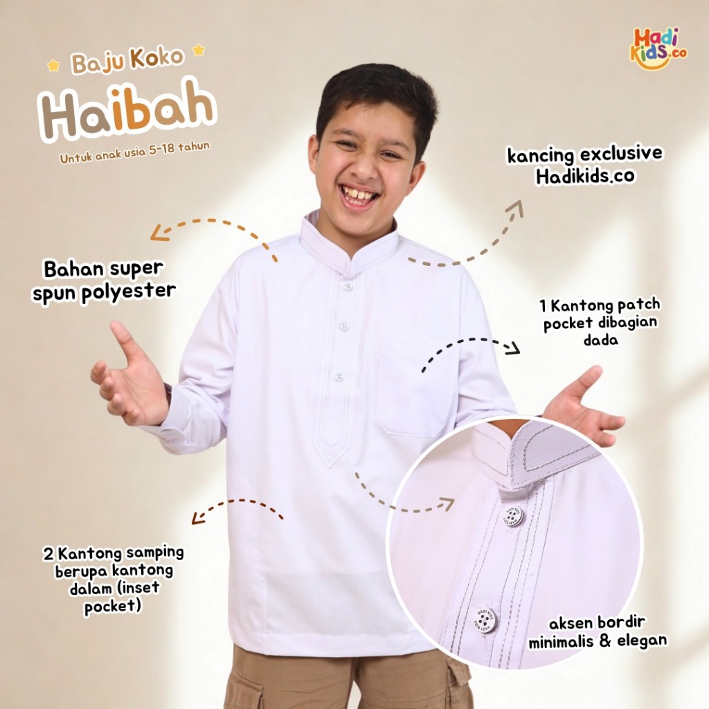 Baju Koko Putih Anak by Hadikids.co | Kemeja Koko Anak | Kemko Putih Muhammad Hadi Assegaf | Kemko Anak Lengan Panjang | Seragam Sekolah | Seragam TPQ