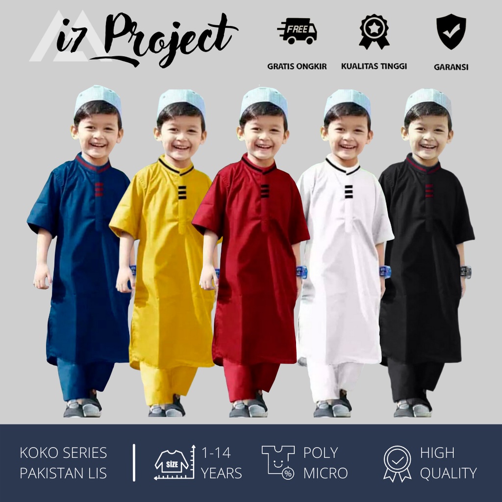 Stelan Koko Anak Laki-laki Model Pakistan LIS Usia 1-14 Tahun Gratis Peci Rajut