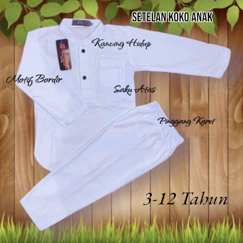 BAJU KOKO ANAK SETELAN PUTIH LENGAN PANJANG/ BAJU MANASIK NGAJI SHALAT/ TK-SD