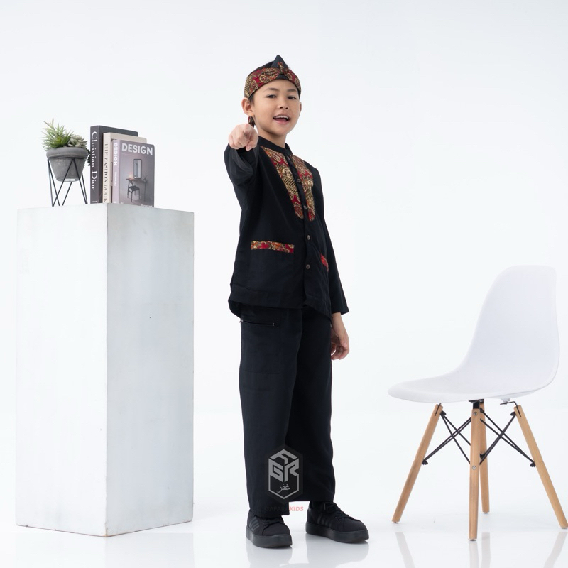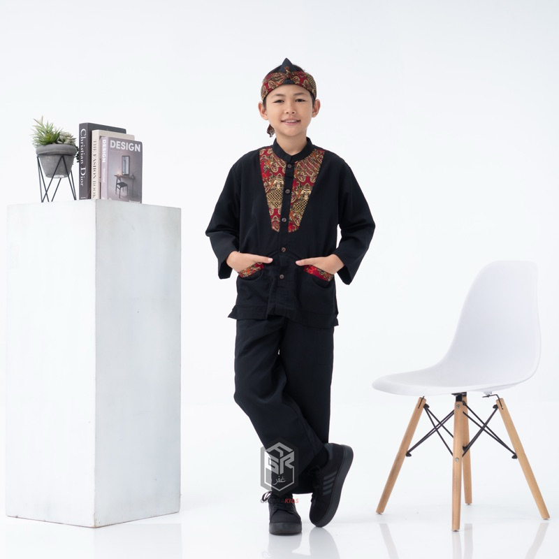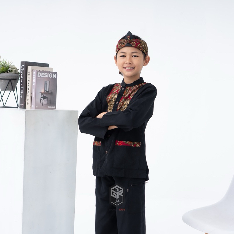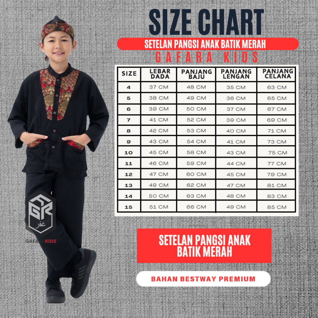 Setelan Pangsi Anak Batik Merah Bahan Bestway Premium Terbaru Free Iket Kepala Usia 4-15 Tahun By Gafara Kids