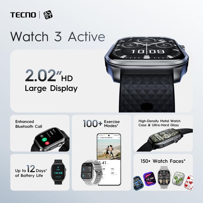 𝙉𝙀𝙒🔥TECNO Watch 3 Active - Enhanced Bluetooth Call Up to 12 Days of Battery Life - tecno watch 3 active