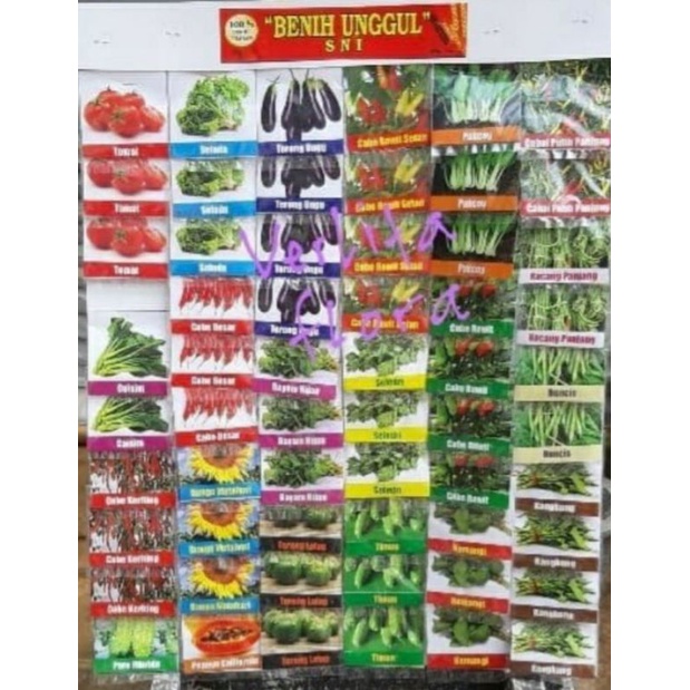Timun, Terong Ungu, Terong Lalap, Terong Hijau Panjang, Tomat, Cabe Keriting, Cabe Merah Besar, Cabe Rawit Setan, Cabe Rawit, Seledri