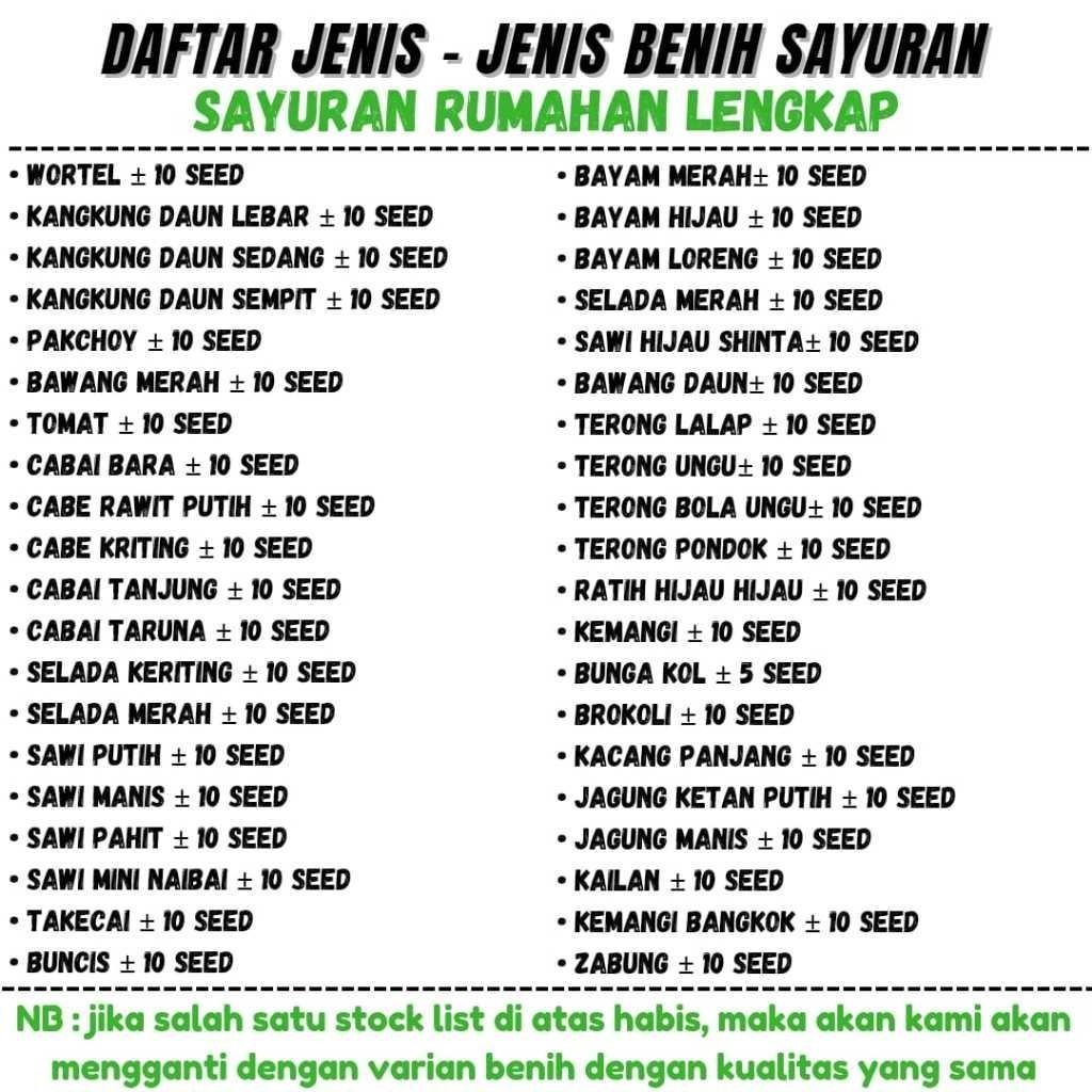 PAKET LENGKAP 33 Jenis Benih Sayuran Murah Meriah Bibit Sayur Komplit Siap Tanam Kebun Rumah