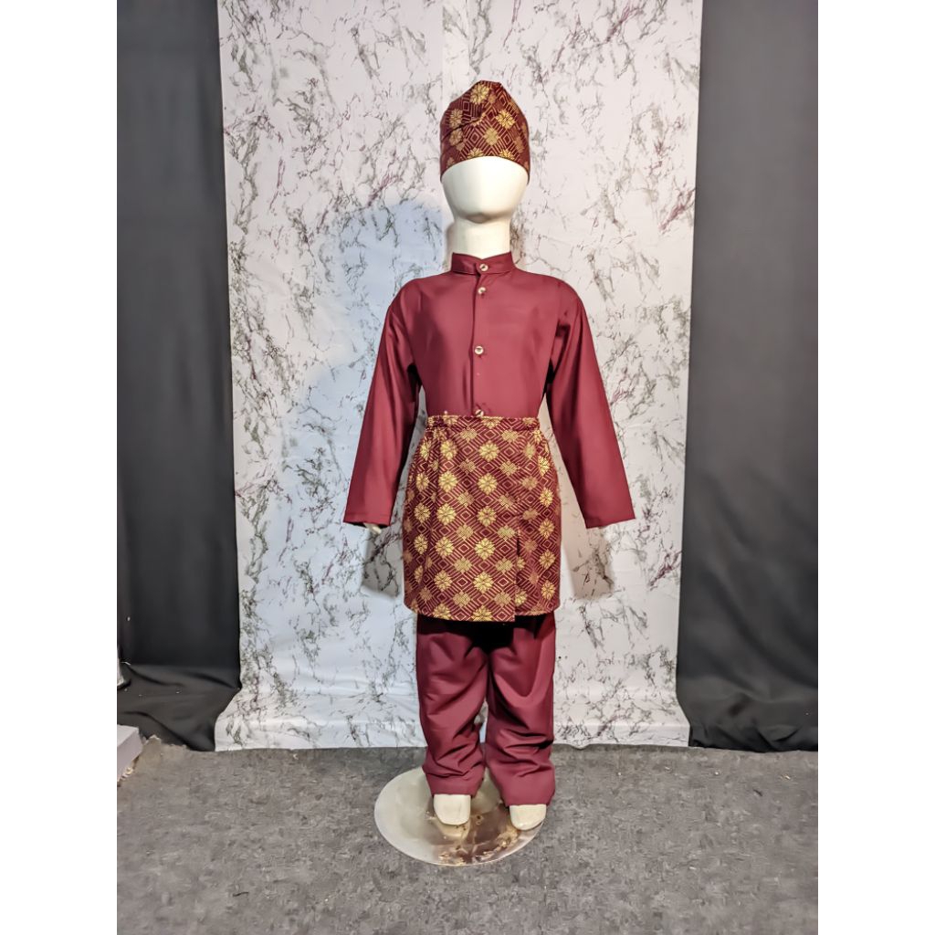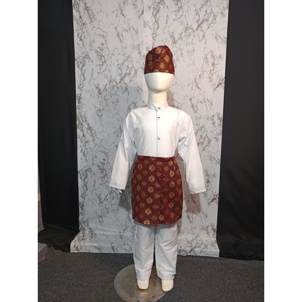 SETELAN BAJU ANAK ADAT MELAYU, BAJU ADAT, motif songket kain random