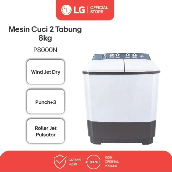 [Star] Mesin Cuci 2 Tabung LG Twin -Top Load Roller Jet Pulsator 3 Punch Wind Jet Dry | P9050RTB