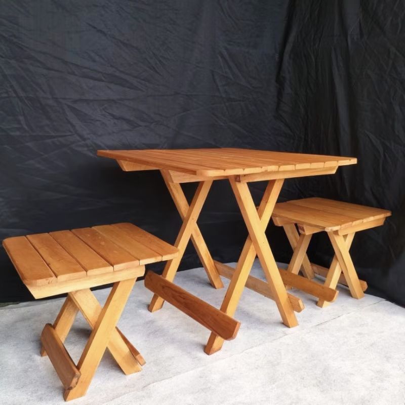 Terlaris Meja Lipat Teras 1 Set Dengan 2 Kursi Lipat Asli Kayu