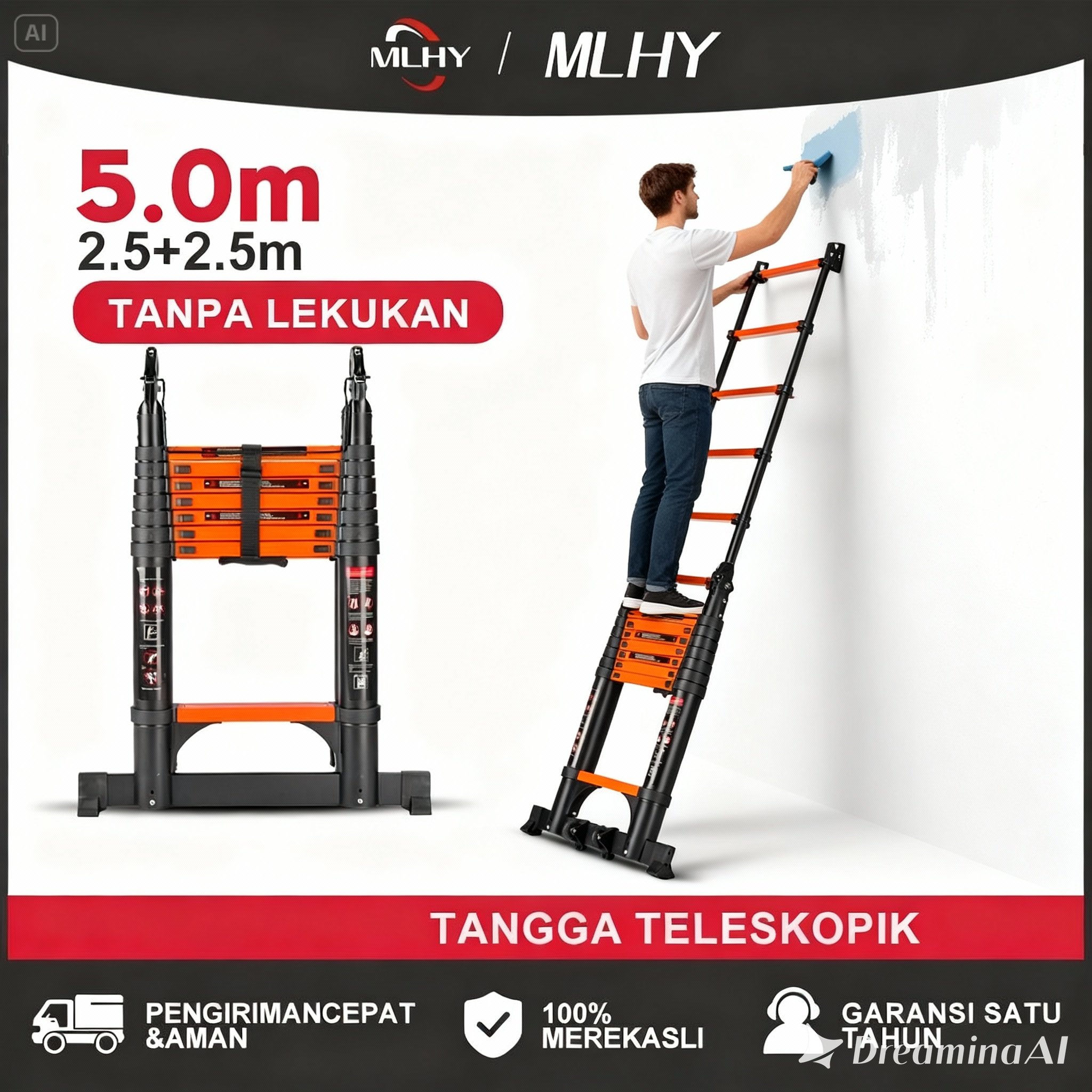 [Mall] MLHY Tangga Teleskopik tanpa lekukan (2.5+2.5)5M Lipat Aluminium Double Telescopic Ladder 5 Meter