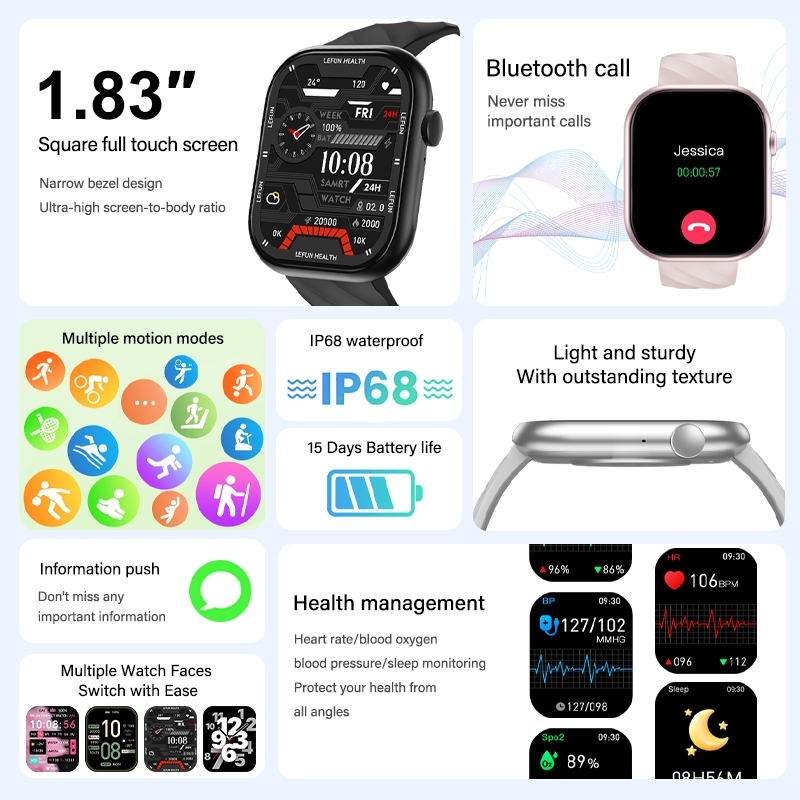 WISELION Smartwatch LG69 MINI - 1.83" HD Display - Android and iOS - Sport & Health Monitoring - LeFun