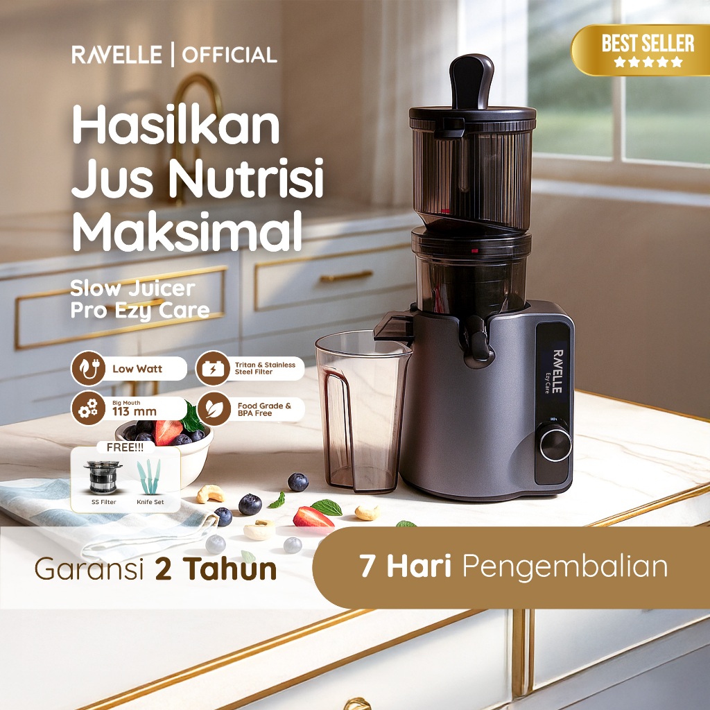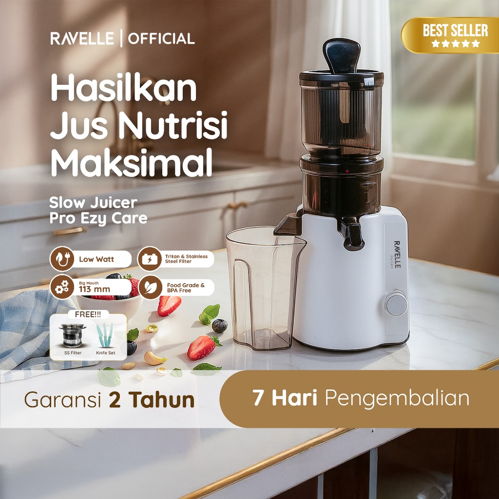 Premium Slow Juicer Pro Ezy Care Extra Big Mouth Easy Juice Easy Clean Low Watt Ravelle
