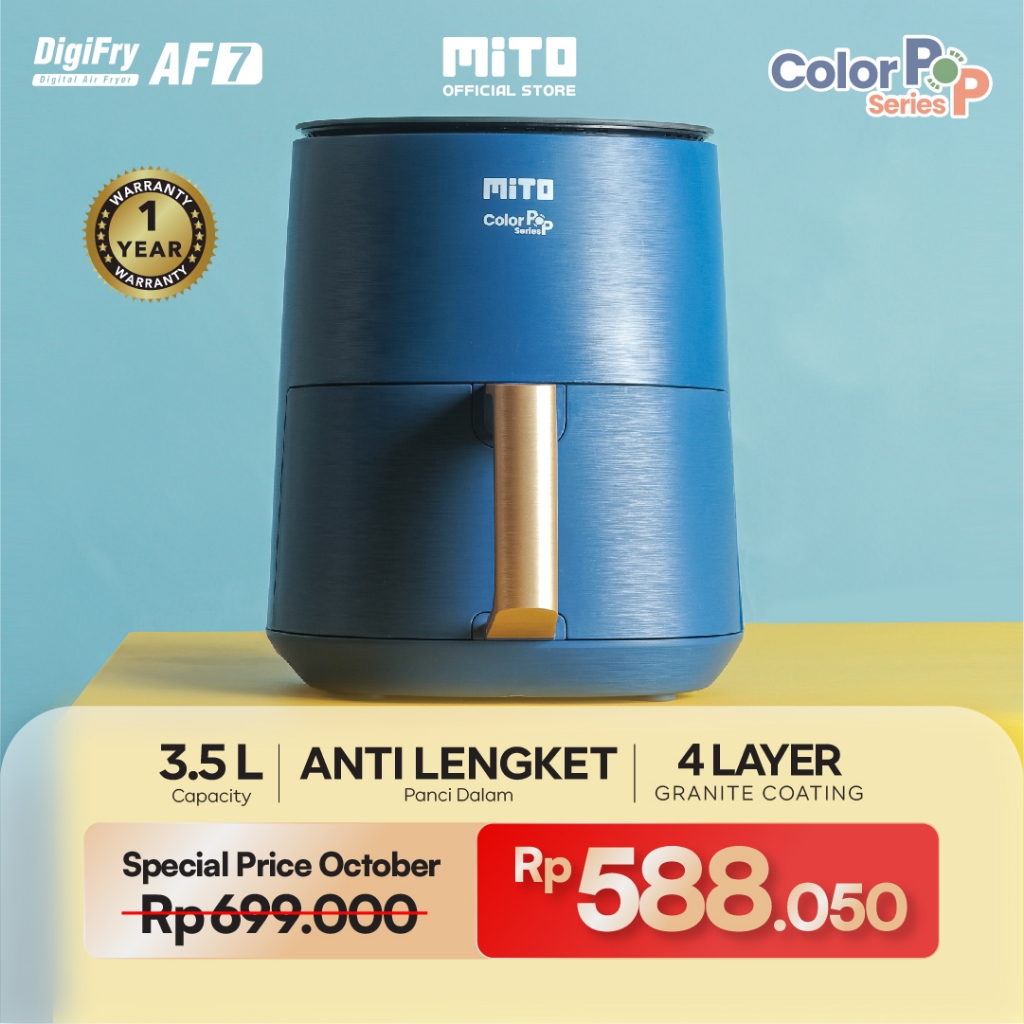 Airfryer Mito Digifry Color Pop Af7 3.5L Digital 8 Pilihan Menu Makanan Touch Screen Led Multifungsi