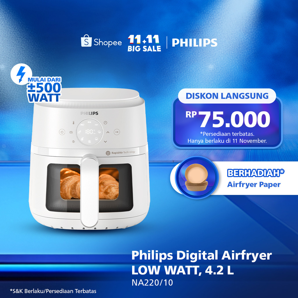 Airfryer Low Watt 500W Transparan Best Choice 4.2 L Philips Na220/10 Dengan Jendela Transparan