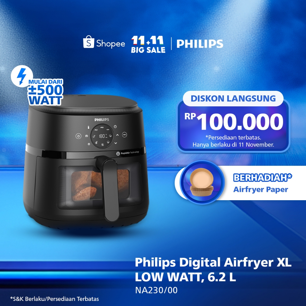 Airfryer Low Watt Mulai Dari 500W Transparan Kapasitas Besar 6.2 L Philips Na230/00