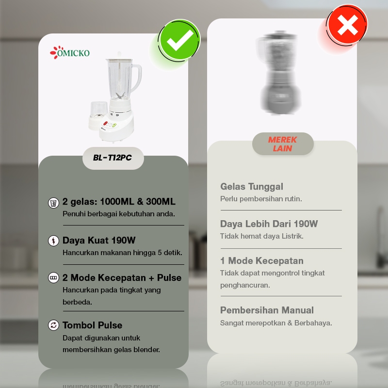 Blender Plastik Omicko 2In1 Pisau Stainless Food Grade Multifungsi Garansi 1 Tahun