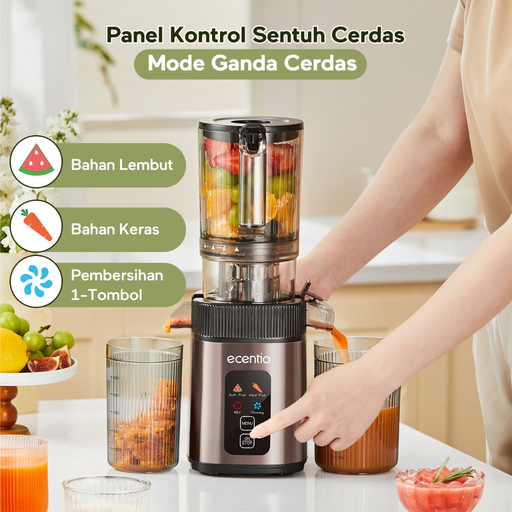 Juicer Ecentio Smart Slow 1000Ml Besar Panel Sentuh Lubang 112Mm Tanpa Ampas