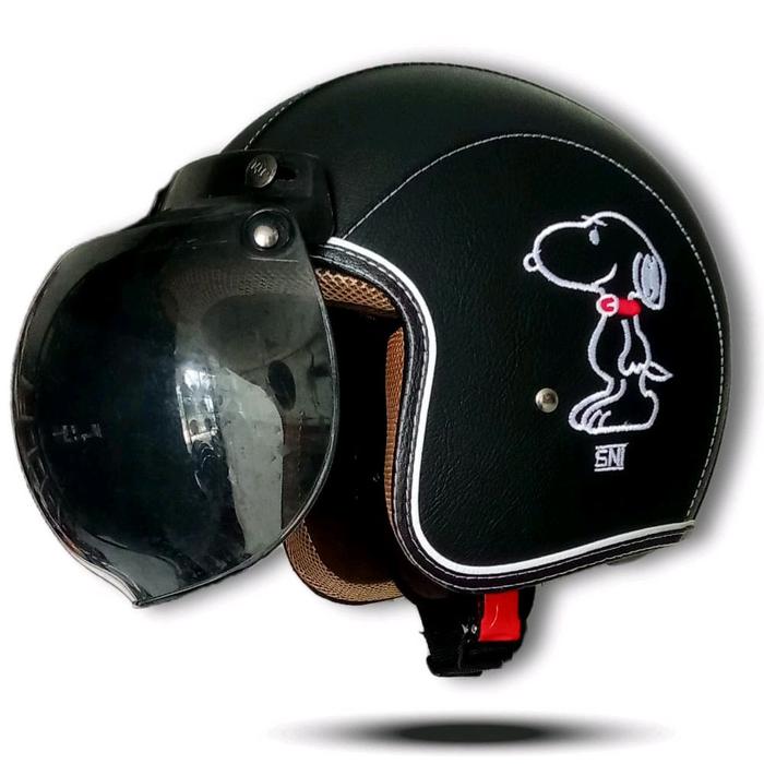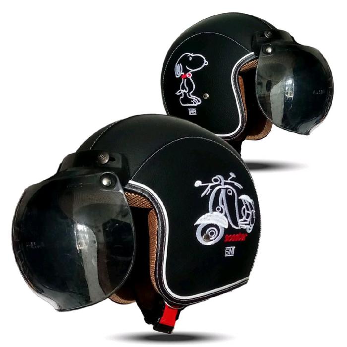 Helm Bogo Dewasa Kulit Bordir Motorcycle - kulit Bordir Vespa kaca Cembung Hitam
