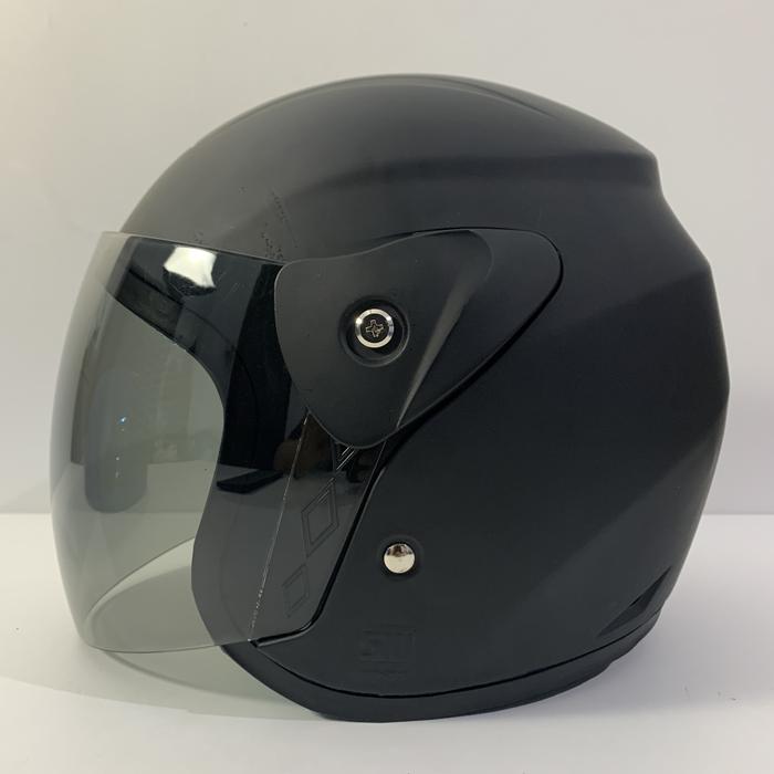Helm Nuvo Solid Hitam Doff - Single Visor - 1 Kaca - Helm SNI - Helmet Dewasa - (SMOKE) Nuvo Hitam Doff