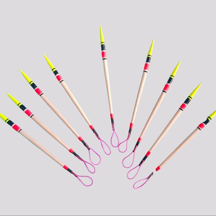 MEGA SALE PELAMPUNG PANCING JARUM IKAN MAS UKURAN 8 CM ISI 5 KUKUMBUL KAYU OTOMATIS - UJUNG MERAH MOTIF API BEST