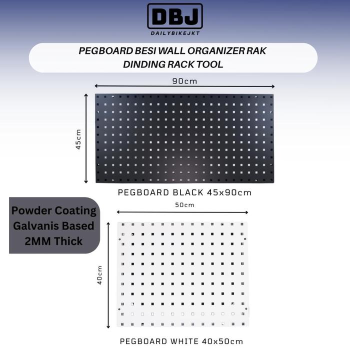 PEGBOARD BESI WALL ORGANIZER RAK DINDING RACK TOOL - WHITE | 45X90CM