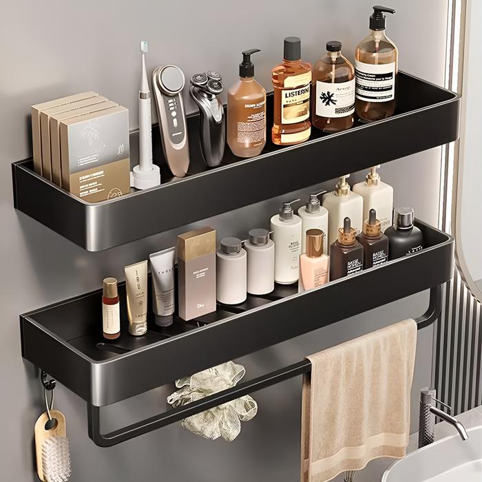 Hitam Rak Kamar Mandi Rak Dinding Tempel Organizer Shower Sudut Handuk - 30cm