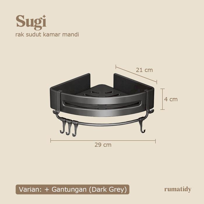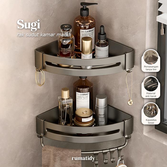 SUGI Rak Kamar Mandi Sudut Stainless Steel Rak Susun Tempel Dinding Rack Tempat Sabun - SUGI DarkGrey Gantungan