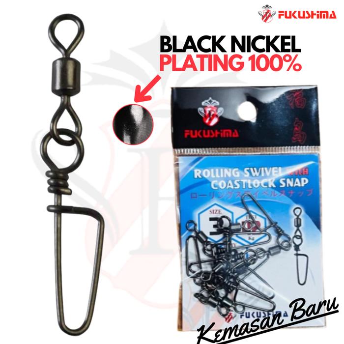 MEGA SALE KILI KILI PENITI ROLLING SWIVEL WITH COASTLOCK SNAP FUKUSHIMA BLACK NICKEL TAHAN KOROSI - 2/0 BEST
