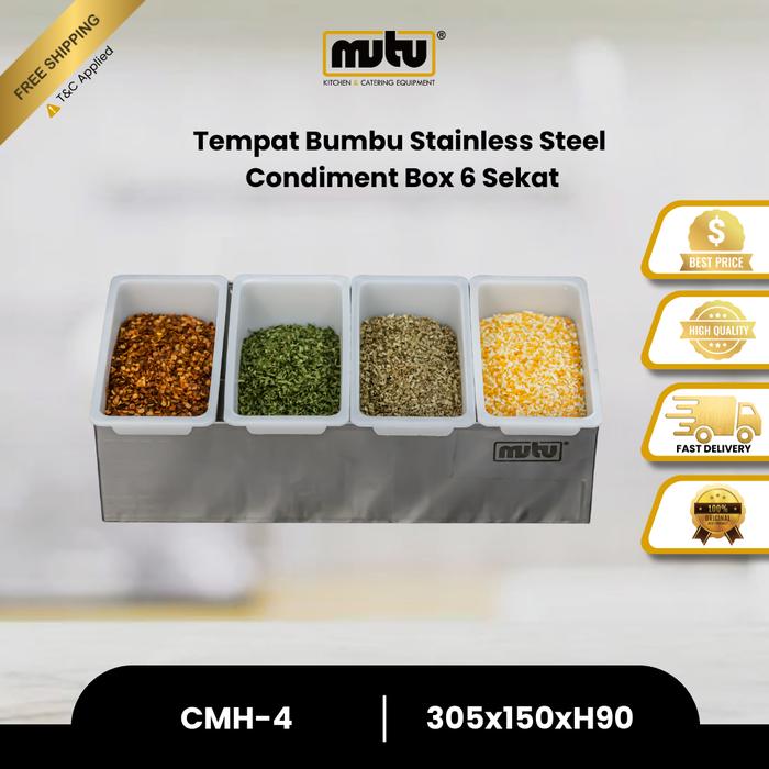 MUTU Wadah Bumbu 4 Ruang Tutup Transparan Stainless Steel CMH4